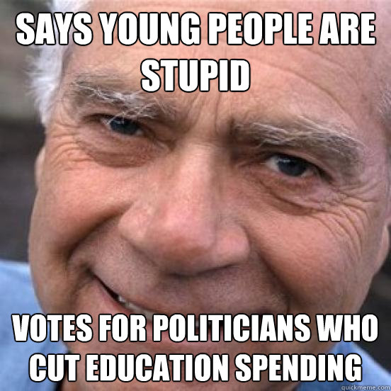 “When I was your age, I *worked* and *saved* for school, a home and a jacuzzi. You lot are spoiled and lazy. Get a job instead of complaining all day.” – Baby Boomer Logic